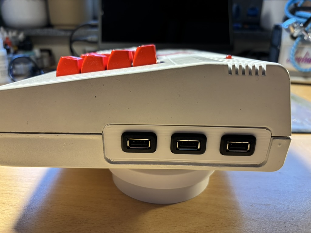 Hier ein weiterer MISTer-Umbau. Das war ganz schön arbeitsintensiv, aber das Ergebnis ist toll geworden 🙂 Das Gehäuse war defekt, abgebrochene Nasen. Wurde mit 3D-gedruckten Teilen ersetzt. Ausgangspunkt war das Projekt C64 Gehäuse als USB-Tastatur mit Raspberry Pi Pico.