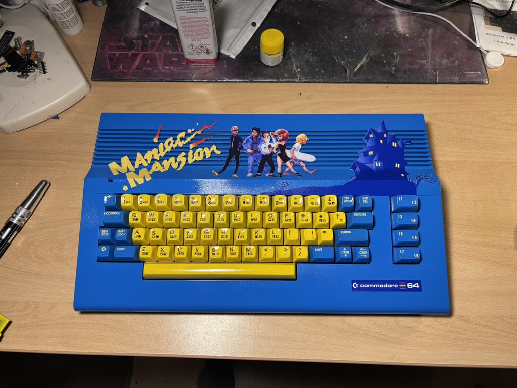 Was liegt näher als ein tolles Maniac-Mansion-Design für einen C64? Nun ja, ein Ghostbusters-Design aber sonst nicht viel 😄 Da ich einen C64C geschenkt bekommen habe, bei dem das Board etwas wacklig aber grundsätzlich funktionsfähig war, habe ich Wert darauf gelegt, auch wieder das originale Board einbauen zu können.