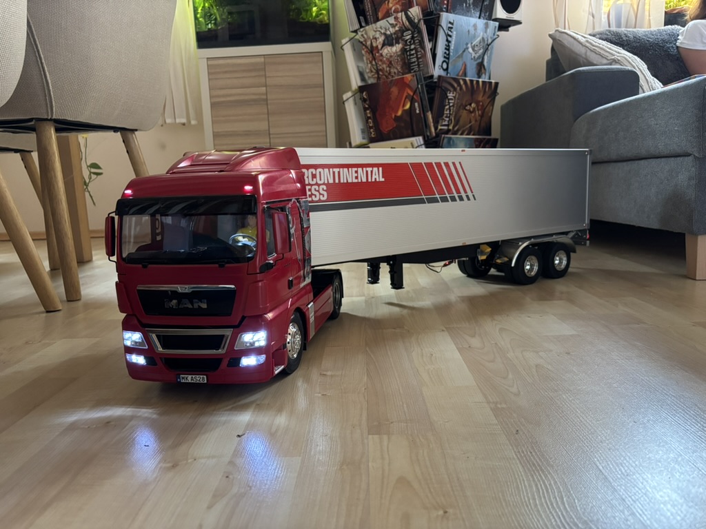 Mega-Projekt, auf der Basis habe ich einen Tamyia MAN-Truck gebaut. Mit drahtlos angebundenem Trailer.